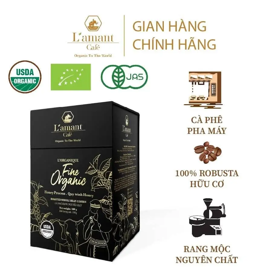 Cà phê hạt hữu cơ nguyên chất L’amant Fine Organic chuẩn USDA