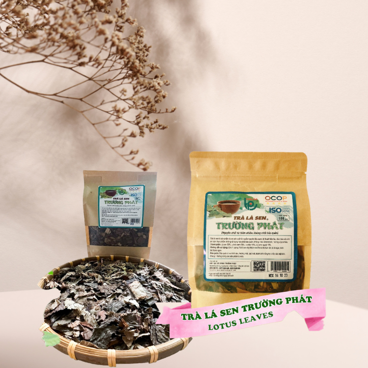 Công Dụng | Trà lá sen có công dụng rất tốt đối với sức khỏe của con người đó là bổ sung nước cho những người bị tiêu chảy hoặc cơ thể bị thiếu nước; hỗ trợ điều trị rối loạn mỡ máu, sốt xuất huyết, băng huyết, chảy máu cam, tiêu chảy ra máu ho ra máu và nôn ra máu, đau mắt, giúp ngủ ngon. Uống trà lá sen thay nước hàng ngày còn có công dụng phòng chống béo phì, tạo dáng eo thon cho phụ nữ cũng như đàn ông bị béo bụng. Điều đặc biệt của sản phẩm Trà lá sen của Hợp tác xã DVNN Trường Phát là rất khác biệt so với những loại trà khác, vì trà lá sen Trường Phát là kết hợp mùi thơm của lá sen quyện với mùi thơm của lá dứa, lá trà xanh và lá cơm nguội và được tạo ra từ chính mãnh đất quê hương huyện Nhơn Trạch – Đồng Nai và người lao động của địa phương. |